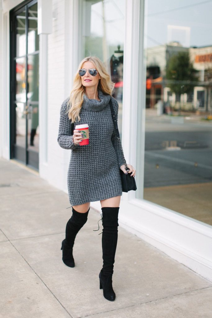 1. The Classic Knit Dress and Knee-High Boots Combo
